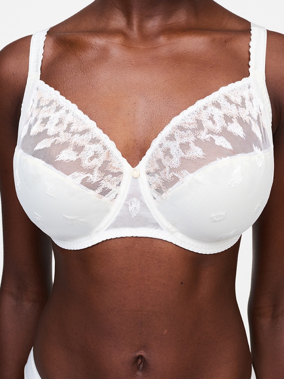 Σουτιέν μπανέλα εκρού Bold Curve Full Chantelle. Το Bold Curve Full Coverage Unlined σουτιέν είναι μια εφαρμογή στην οποία μπορείτε να βασιστείτε. Το ελαφρύ κέντημα με λεπτές λεπτομέρειες που θυμίζουν animal print προσφέρει ανάλαφρη εμφάνιση και αίσθηση. Με καθησυχαστική κάλυψη και εφέ κεντραρίσματος, δεν χρειάζεται να κάνετε συμβιβασμούς στο στυλ για πλήρη στήριξη του μπούστου. Cups επενδεδυμένα με μαλακό ύφασμα κατά μήκος του κάτω μέρους για πρόσθετη στήριξη. Κεντημένο διαφανές διχτυωτό τούλι κατά μήκος της πάνω μέρους. Λογότυπο Chantelle ανάμεσα στις cups και δαντελένια λεπτομέρεια στις τιράντες. Με ρυθμιζόμενες τιράντες και πλάτη σε σχήμα U για περισσότερη στήριξη και άνεση.