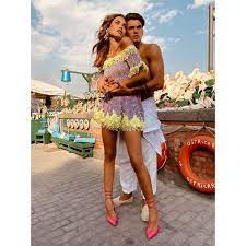 Μπλουζοφόρεμα μωβ με κίτρινο lime Antica Sartoria. Δαντέλα broderie. Στράπλες με κοντό μανίκι και σφιγγοφωλιά. Φοριέται και σαν ρούχο και πάνω από το μαγιό σας.