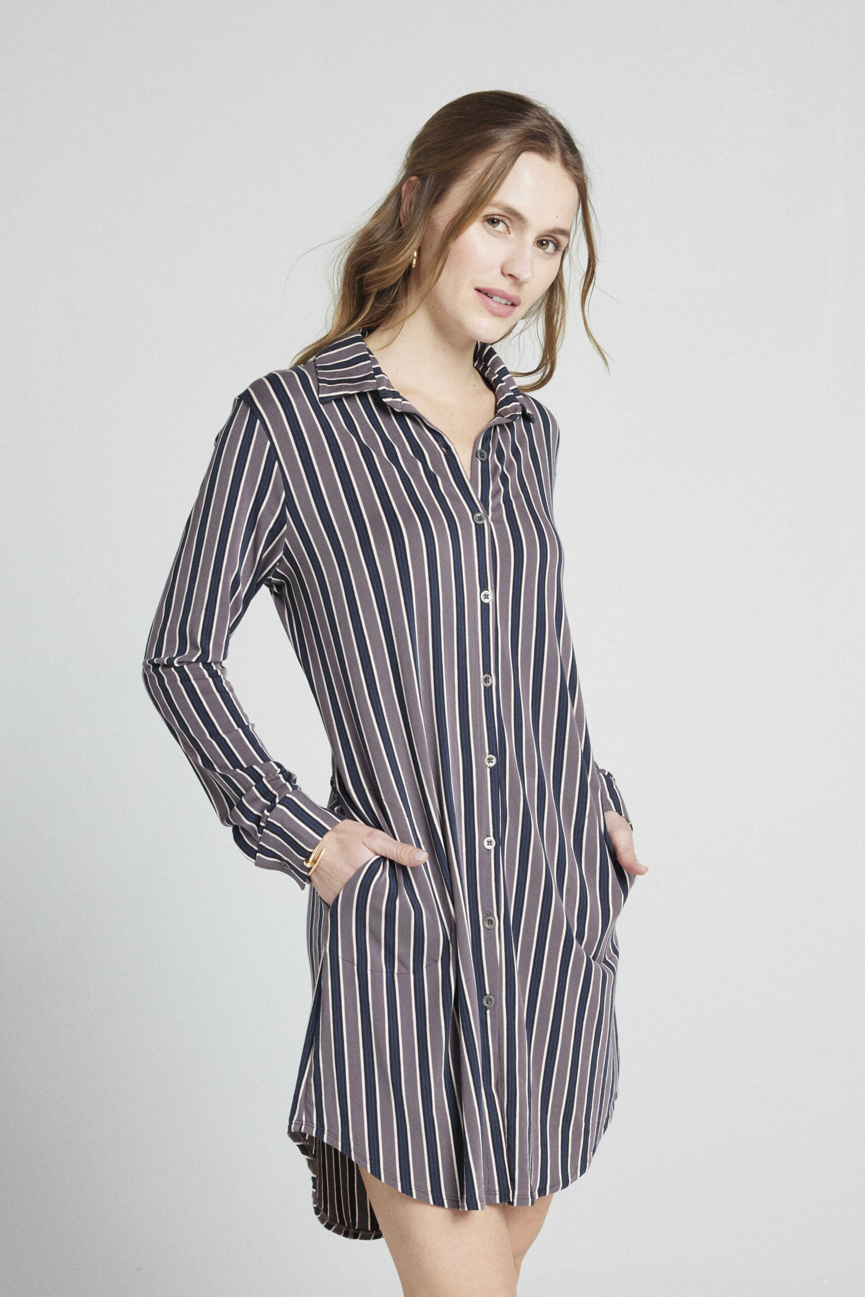 Με πέτο γιακά, τσέπη και κουμπιά μέχρι κάτω.