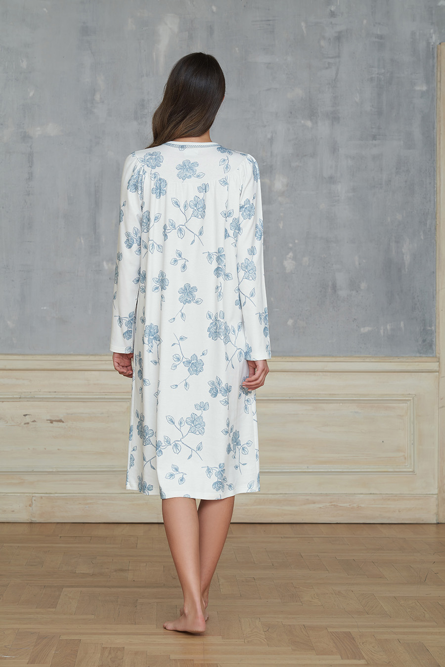 Νυχτικό λευκό γαλάζιο floral Linclalor