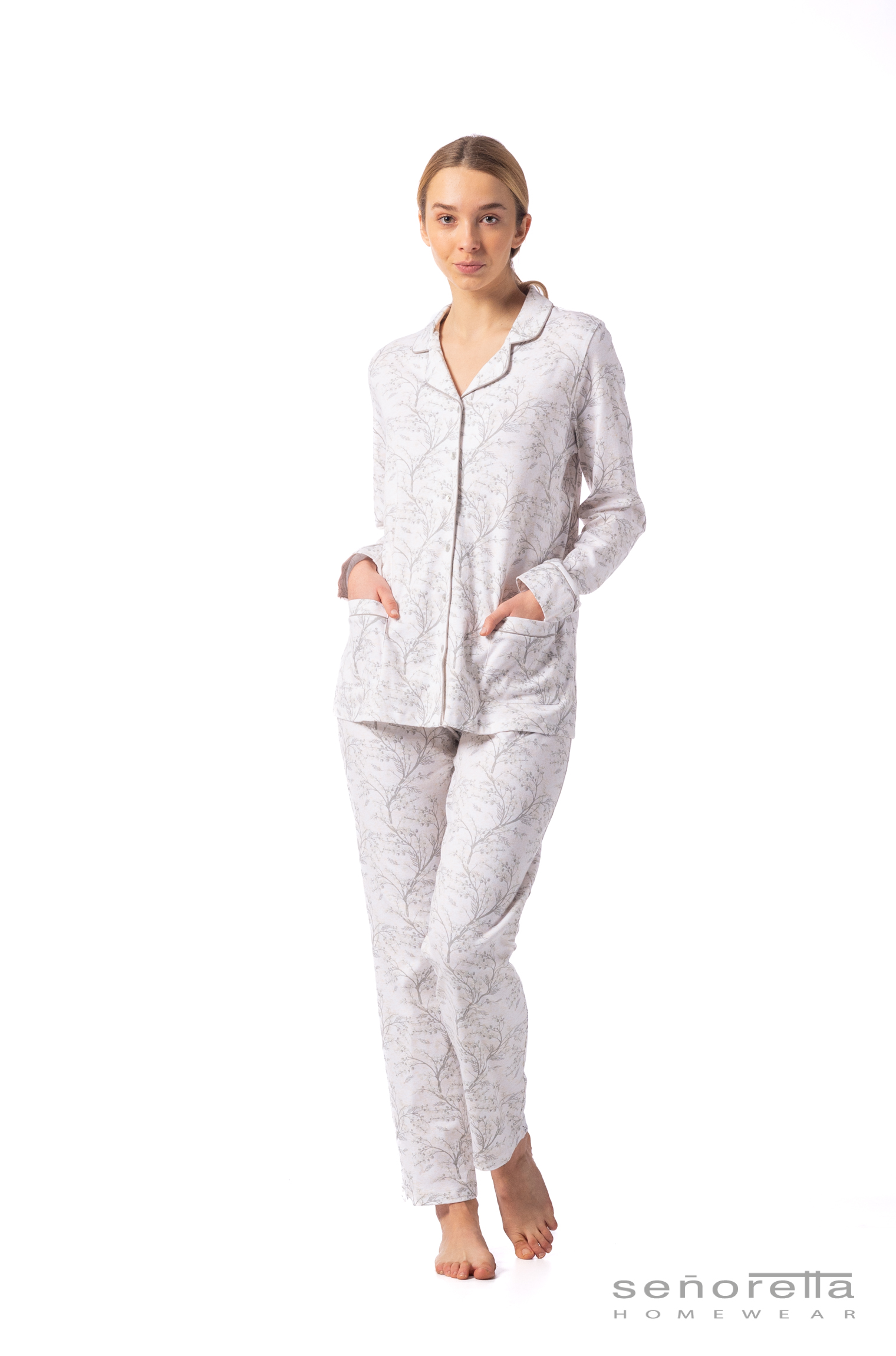 Πιζάμα κουμπωτή γκρι εκρού floral Senoreta by Egatex