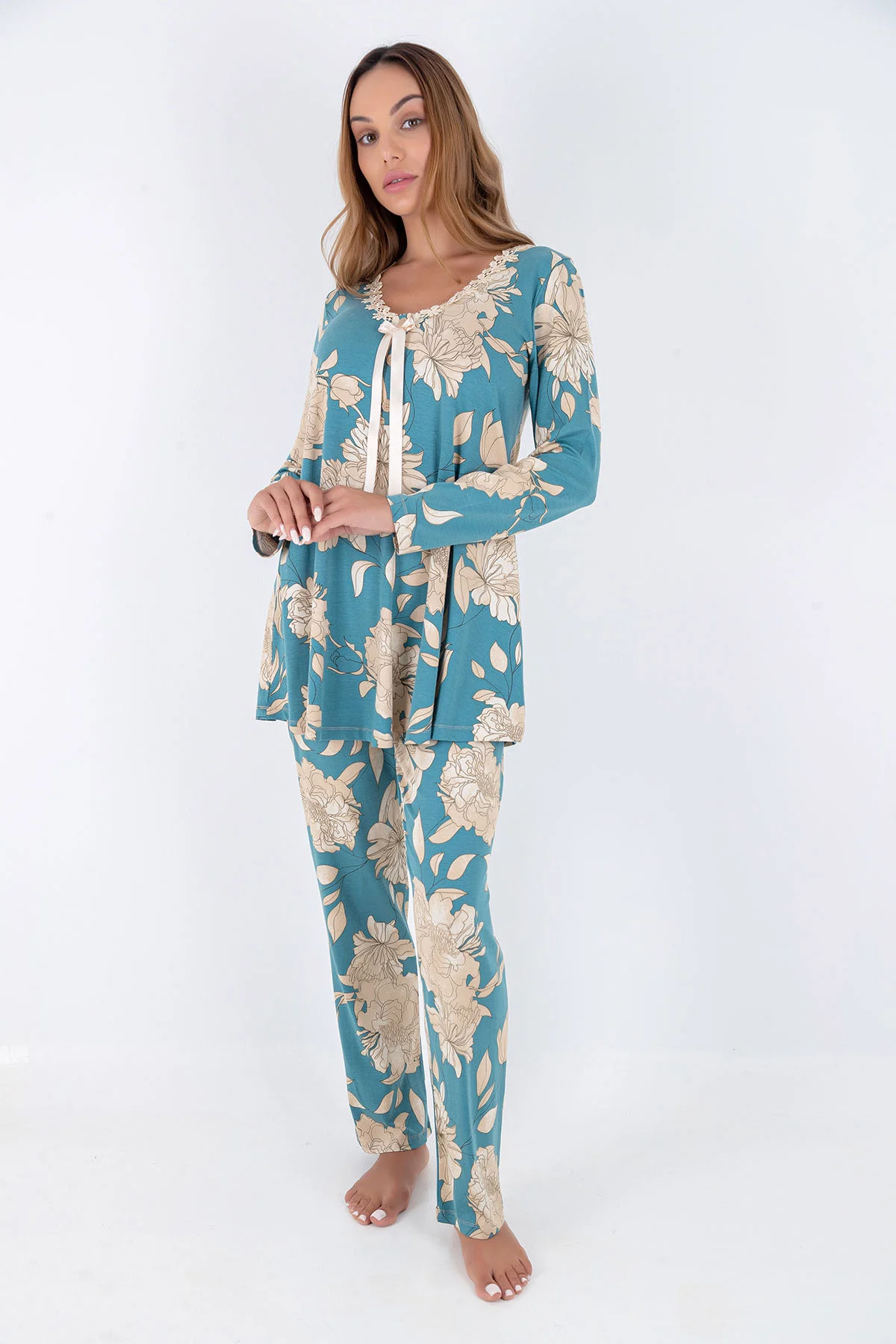Πιζάμα πράσινη μπεζ floral Claire Katrania