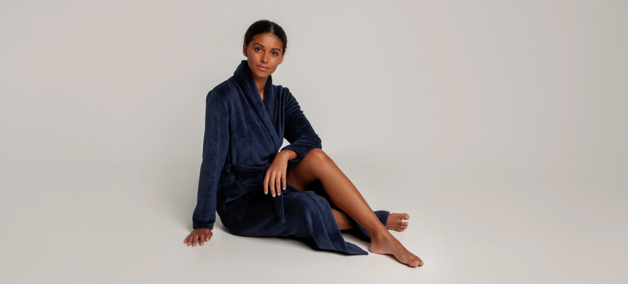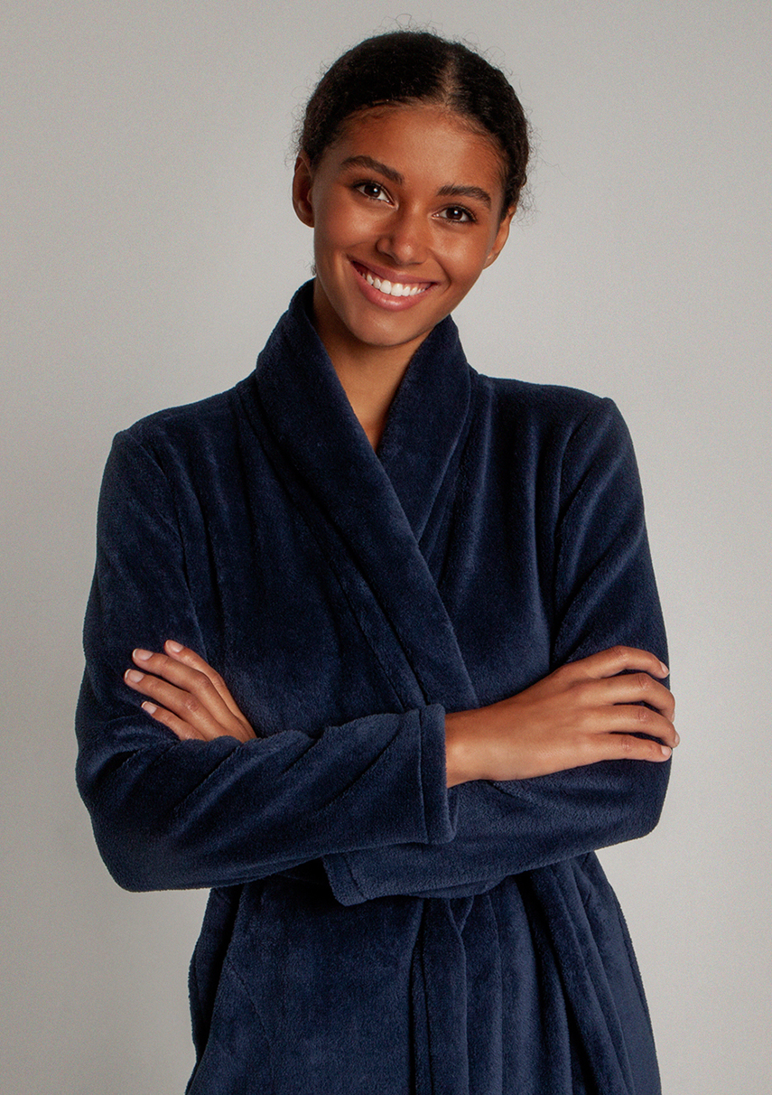 Ρόμπα maxi μπλε fleece Nota Lingerie. Με γιακά, χιαστί με ζώνη και τσέπες.