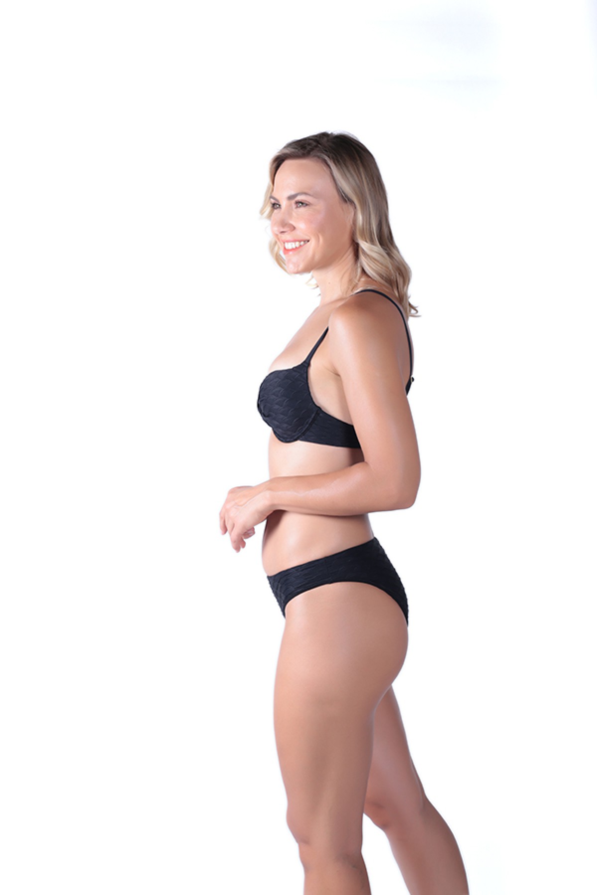 Set Μπικίνι επένδυση μπανέλα Crool Swimwear μαύρο με ανάγλυφη lycra. 85% polyamide 15% elastan