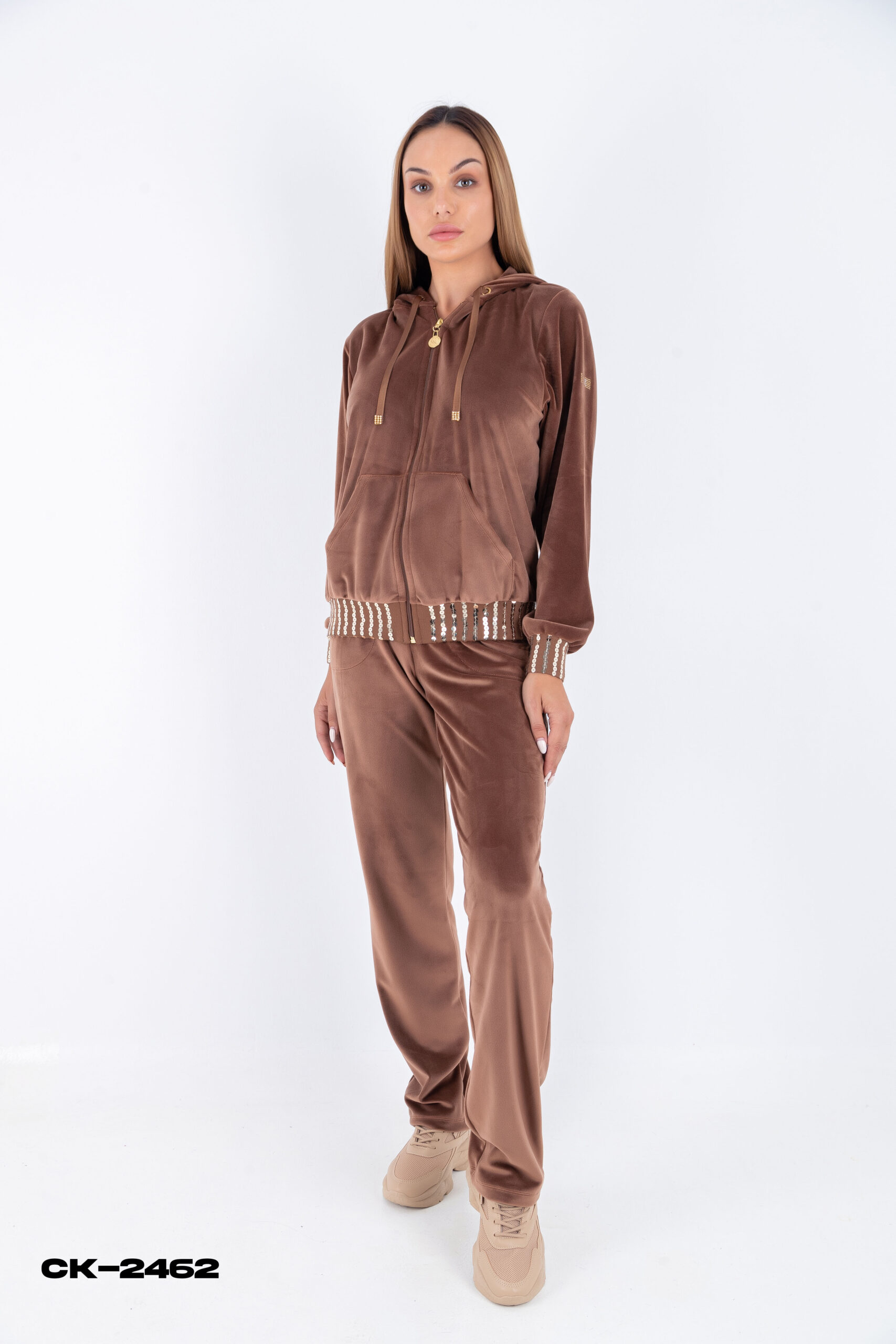 Ζακέτα με φερμουάρ, τσέπες και κουκούλα. Διακοσμημένη με πούλιες στο τελείωμα και στις μανσέτες.