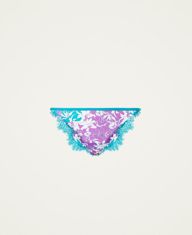 Slip brazil tropical green cyclamen purple Twin Set. Σλιπ Βραζιλιάνικο από μικροΐνες με φλοράλ στάμπα και δαντέλα στο πίσω μέρος. Λεπτά πλαϊνά και χωρίς ραφές πίσω. Θηλυκό και κομψό, θα δείχνει υπέροχο με το αγαπημένο σας ασορτί σουτιέν.