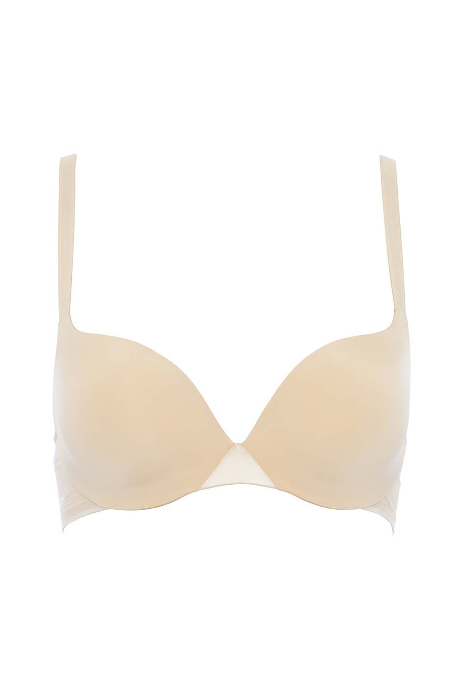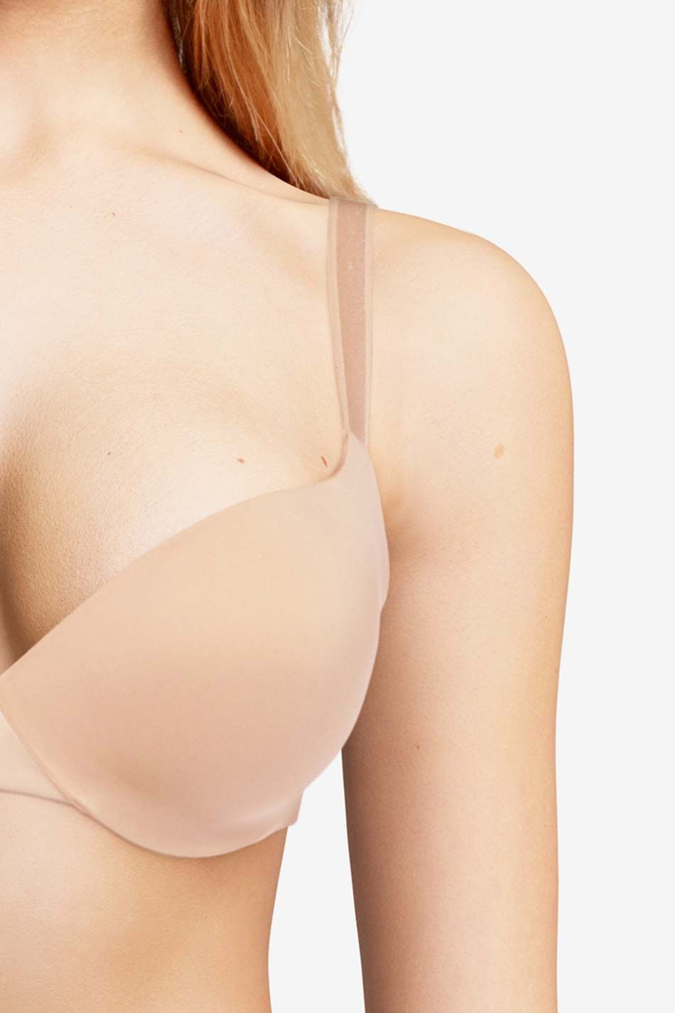 Σουτιέν μπανέλα επένδυση μπεζ push up Essential Chantelle. Η νέα αόρατη σειρά της Chantelle, μια αξέχαστη εμπειρία που θα προσελκύσει όλες τις γυναίκες. Από την τεχνογνωσία της μάρκας Chantelle και τις τελευταίες τεχνολογίες, αυτή η γραμμή συνδυάζει τέλεια την άνεση μιας εντελώς αόρατης δεύτερης σειράς δέρματος με έναν πολύ ιδιαίτερο σχεδιασμό. Με προσεκτικά σχεδιασμένες cups που παρέχουν τη σωστή ισορροπία μεταξύ στήριξης, ελαφρότητας και άνεσης, τα κομμάτια αυτής της γραμμής θα προσαρμοστούν σε οποιαδήποτε στολή με πλήρη αόρατο τρόπο. Κομψός και μινιμαλιστικός σχεδιασμός, χάρη στα πολύ καθαρά φινιρίσματα και τη λεπτή ματ / γυαλιστερή αντίθεση που παίζεται σε δίχρωμους τόνους. Μαλακά και λεία υλικά, όπως και ένα δεύτερο δέρμα, τυλίγουν το σώμα με καθημερινή άνεση και απαλότητα. Σουτιέν push up με ενσωματωμένες μπανέλες καλυμμένες με πολύ μαλακό πλέγμα για ιδανική καθημερινότητα. Άνευ ραφής φινιρίσματα και απαλά υλικά όπως ένα δεύτερο δέρμα. Τέλεια αόρατη όποια φόρμα φορούν. Ματ / γυαλιστερή αντίθεση.