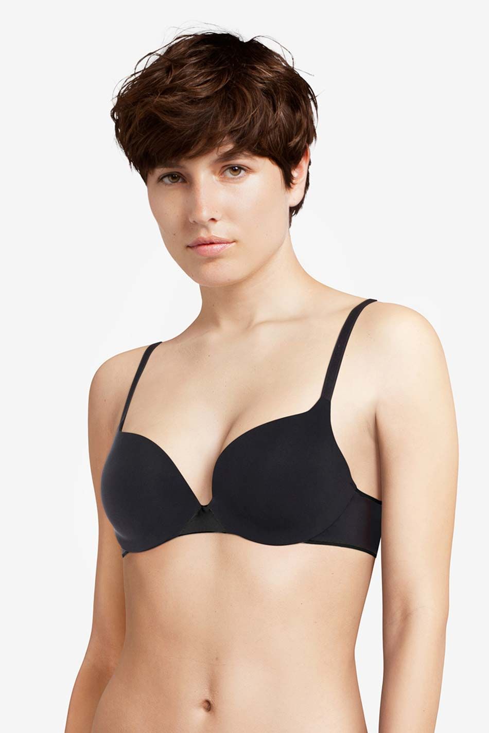Σουτιέν μπανέλα επένδυση μαύρο push up Essential Chantelle. Η νέα αόρατη σειρά της Chantelle, μια αξέχαστη εμπειρία που θα προσελκύσει όλες τις γυναίκες. Από την τεχνογνωσία της μάρκας Chantelle και τις τελευταίες τεχνολογίες, αυτή η γραμμή συνδυάζει τέλεια την άνεση μιας εντελώς αόρατης δεύτερης σειράς δέρματος με έναν πολύ ιδιαίτερο σχεδιασμό. Με προσεκτικά σχεδιασμένες cups που παρέχουν τη σωστή ισορροπία μεταξύ στήριξης, ελαφρότητας και άνεσης, τα κομμάτια αυτής της γραμμής θα προσαρμοστούν σε οποιαδήποτε στολή με πλήρη αόρατο τρόπο. Κομψός και μινιμαλιστικός σχεδιασμός, χάρη στα πολύ καθαρά φινιρίσματα και τη λεπτή ματ / γυαλιστερή αντίθεση που παίζεται σε δίχρωμους τόνους. Μαλακά και λεία υλικά, όπως και ένα δεύτερο δέρμα, τυλίγουν το σώμα με καθημερινή άνεση και απαλότητα. Σουτιέν push up με ενσωματωμένες μπανέλες καλυμμένες με πολύ μαλακό πλέγμα για ιδανική καθημερινότητα. Άνευ ραφής φινιρίσματα και απαλά υλικά όπως ένα δεύτερο δέρμα. Τέλεια αόρατη όποια φόρμα φορούν. Ματ / γυαλιστερή αντίθεση.