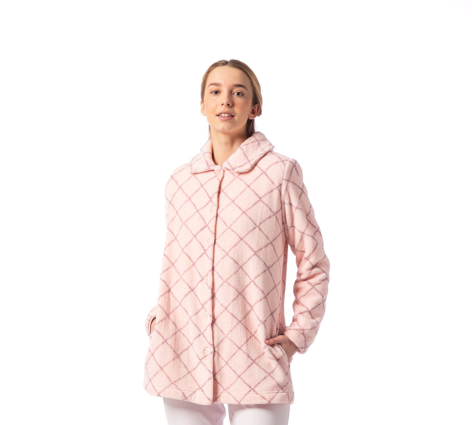 Ζακέτα ρόμπα σωμών με μωβ ρόμβους Egatex. Με γιακά, κουμπιά και τσέπες.